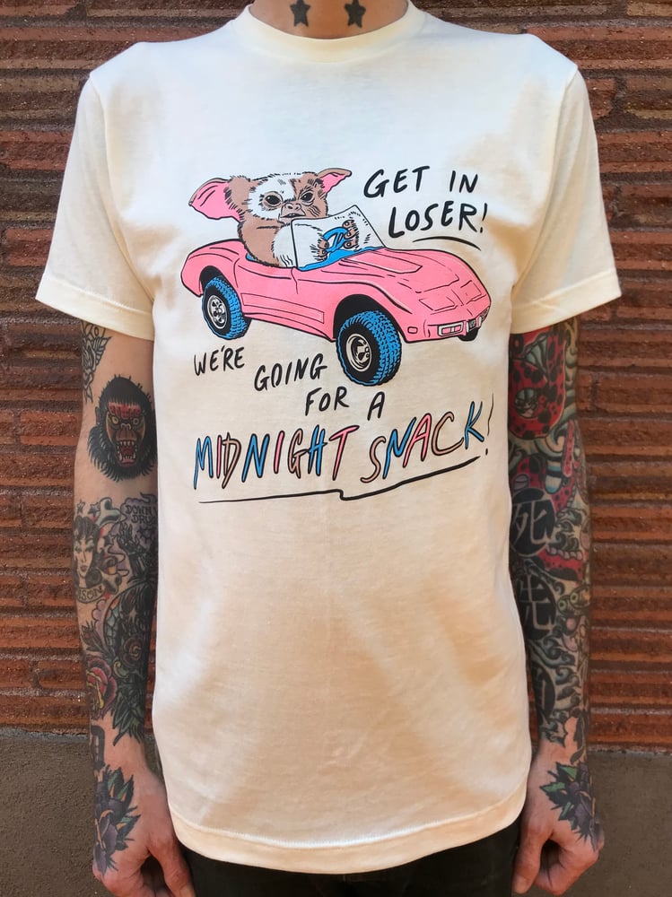 Image screen printed by hand on an off-white natural 100% cotton tee.