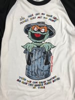 Image screen printed by hand on a UNISEX 100% ring spun soft cotton vintage white and black baseball tee shirt.